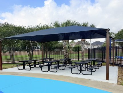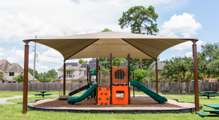 While outside playtime can be fun, sometimes it’s almost too hot to go out. Shade structures not only keep the temperatures down, they protect little ones from up to 98.8% of harmful UV rays.  As a bonus a custom shade structure can set your faith center apart aesthetically and give an open air chapel you’ve been praying for.